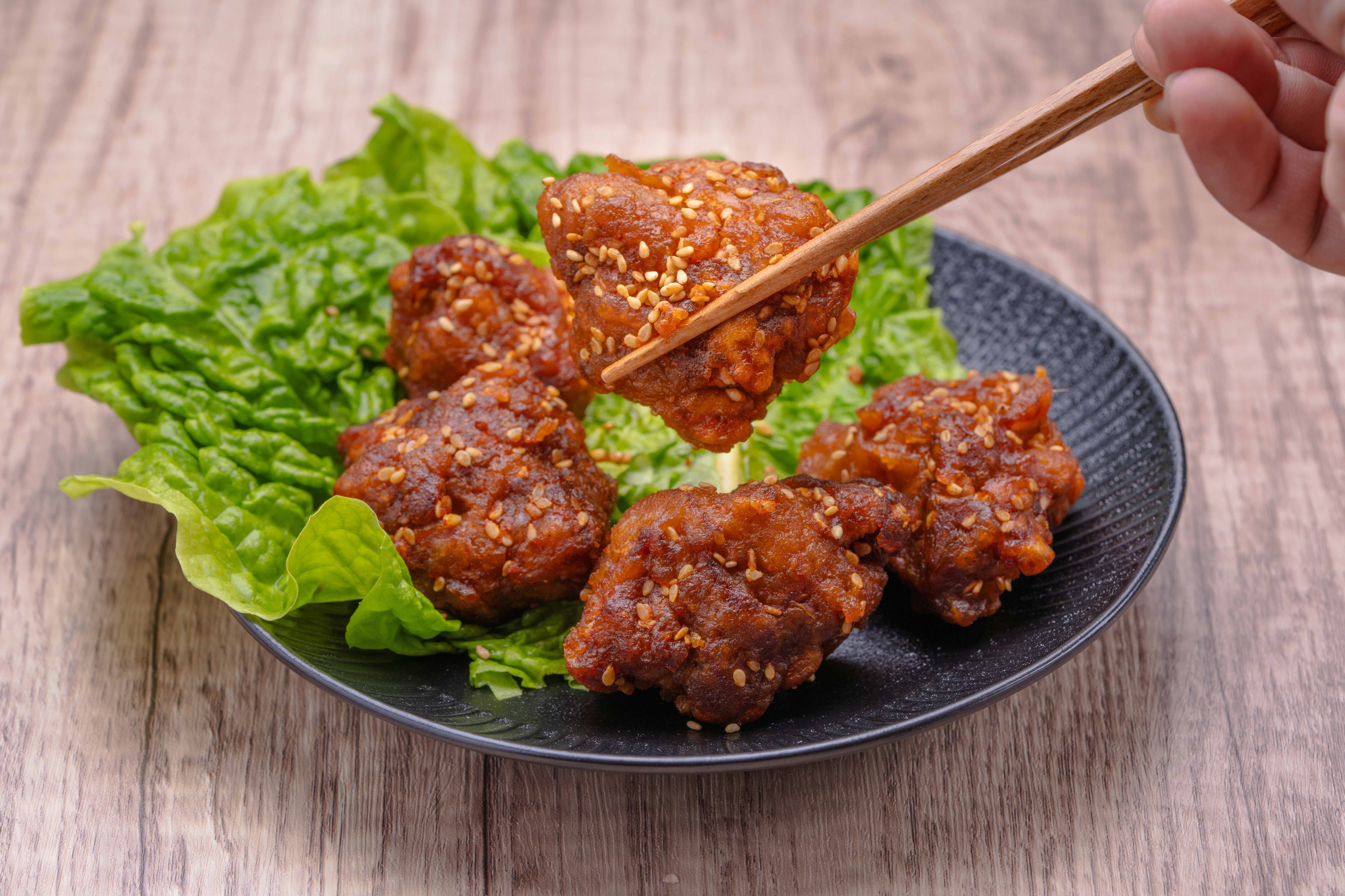 原材料 鶏もも肉(ブラジル)、トマトケチャップ、コチジャン(米みそ、水あめ、麦芽エキス、その他)片栗粉、みりん、料理酒、上白糖、(一部に鶏肉、大豆を含む)