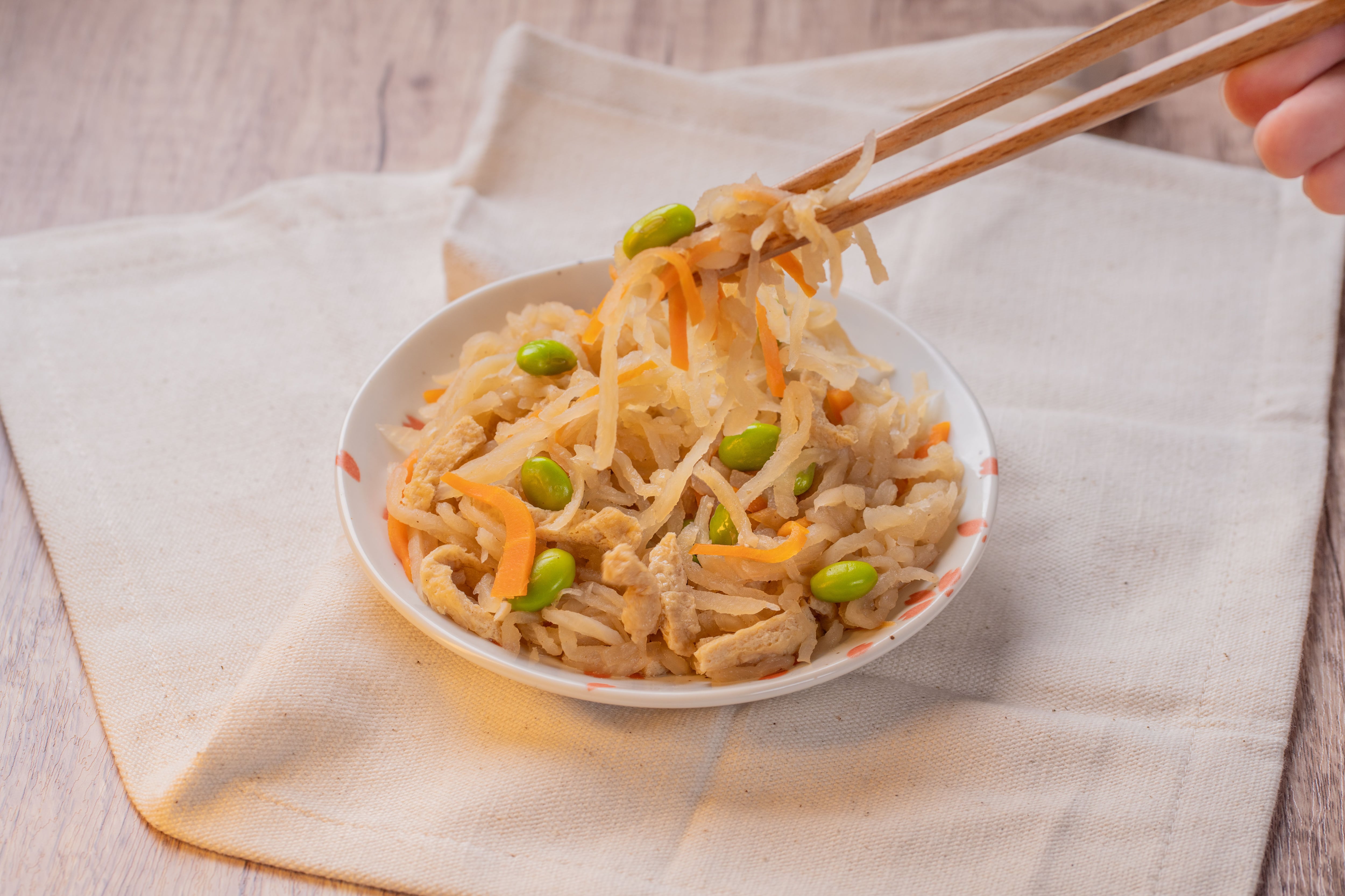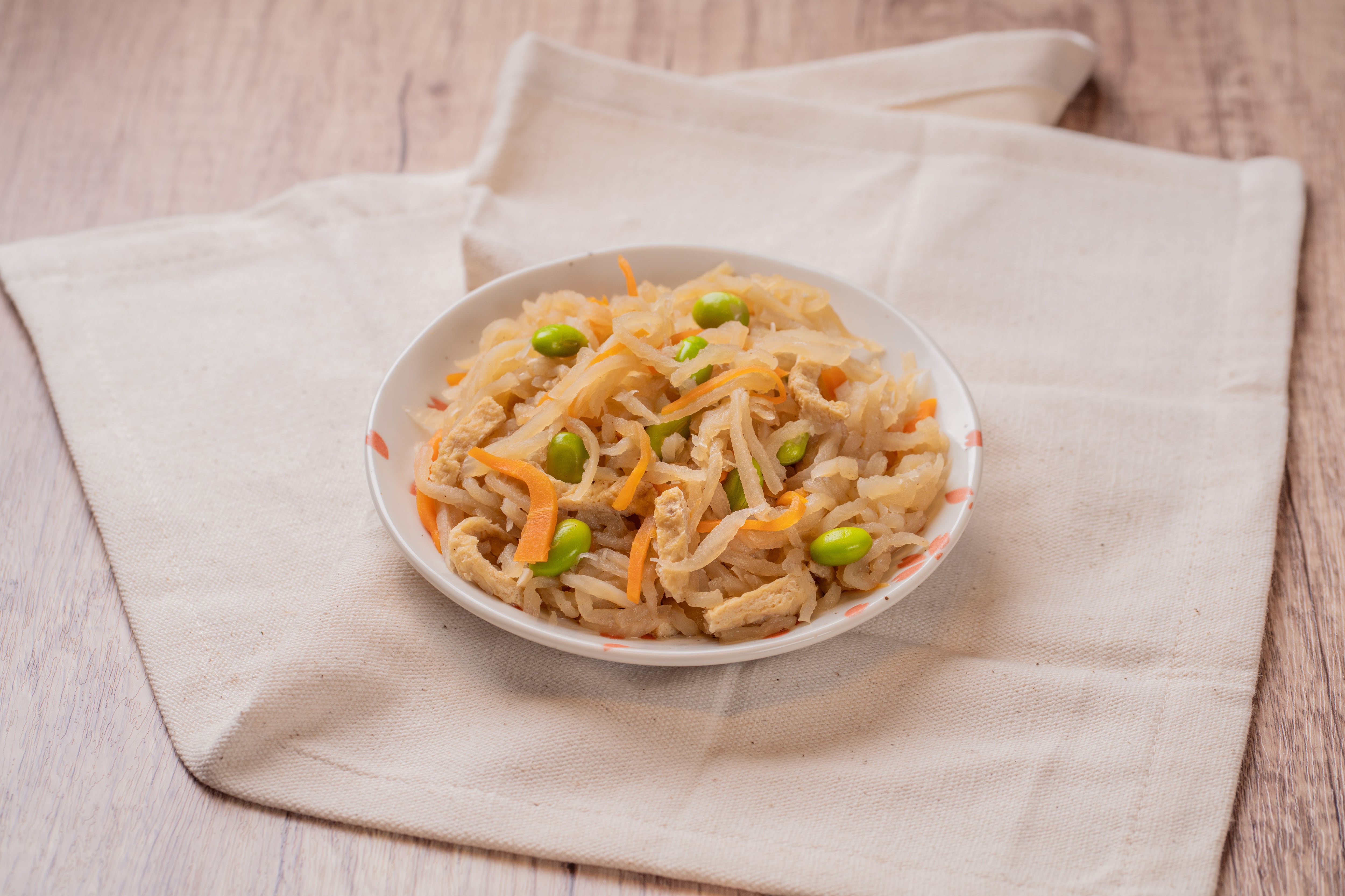 原材料 にんじん(国内)、切り干し大根、油揚げ、枝豆、濃口醤油、上白糖、サラダ油、(一部に小麦、大豆を含む)