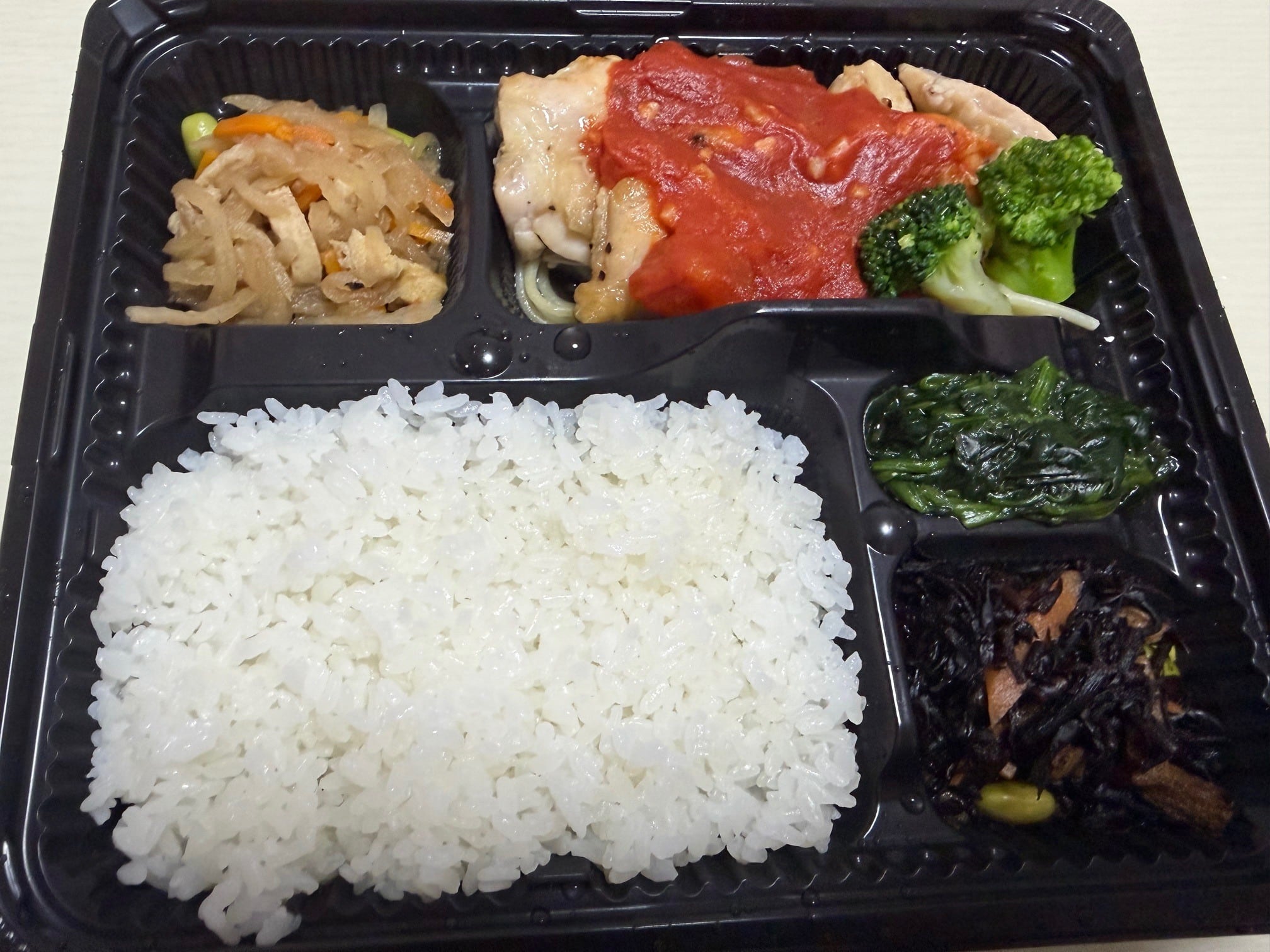 原材料 グリルチキン鶏ももダイストマト、にんにく、甜菜糖、海塩、ブラックペッパー、ブロッコリー、キャベツ、ひじき煮(ひじき、油揚げ、(丸大豆、植物油脂)、にんじん、枝豆、醤油、甜菜糖、みりん、かつお出汁、昆布出汁)、きんぴらごぼう(ごぼう、にんじん、こいくちしょうゆ、甜菜糖、ごま油、赤唐辛子)、ほうれんそうの胡麻和え(ほうれんそう、にんじん、こいくちしょうゆ、甜菜糖、ごま、かつお出汁)、その他おかず(一部に卵・小麦・乳成分・豚肉・牛肉・鶏肉・大豆・ごまを含む)