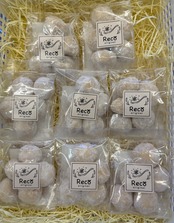 ひとつひとつ手作り自然解凍して一番美味しい状態になるように材料の配分や焼き時間などを調整しようやく完成した原材料にも味にもこだわったRecoオリジナル商品