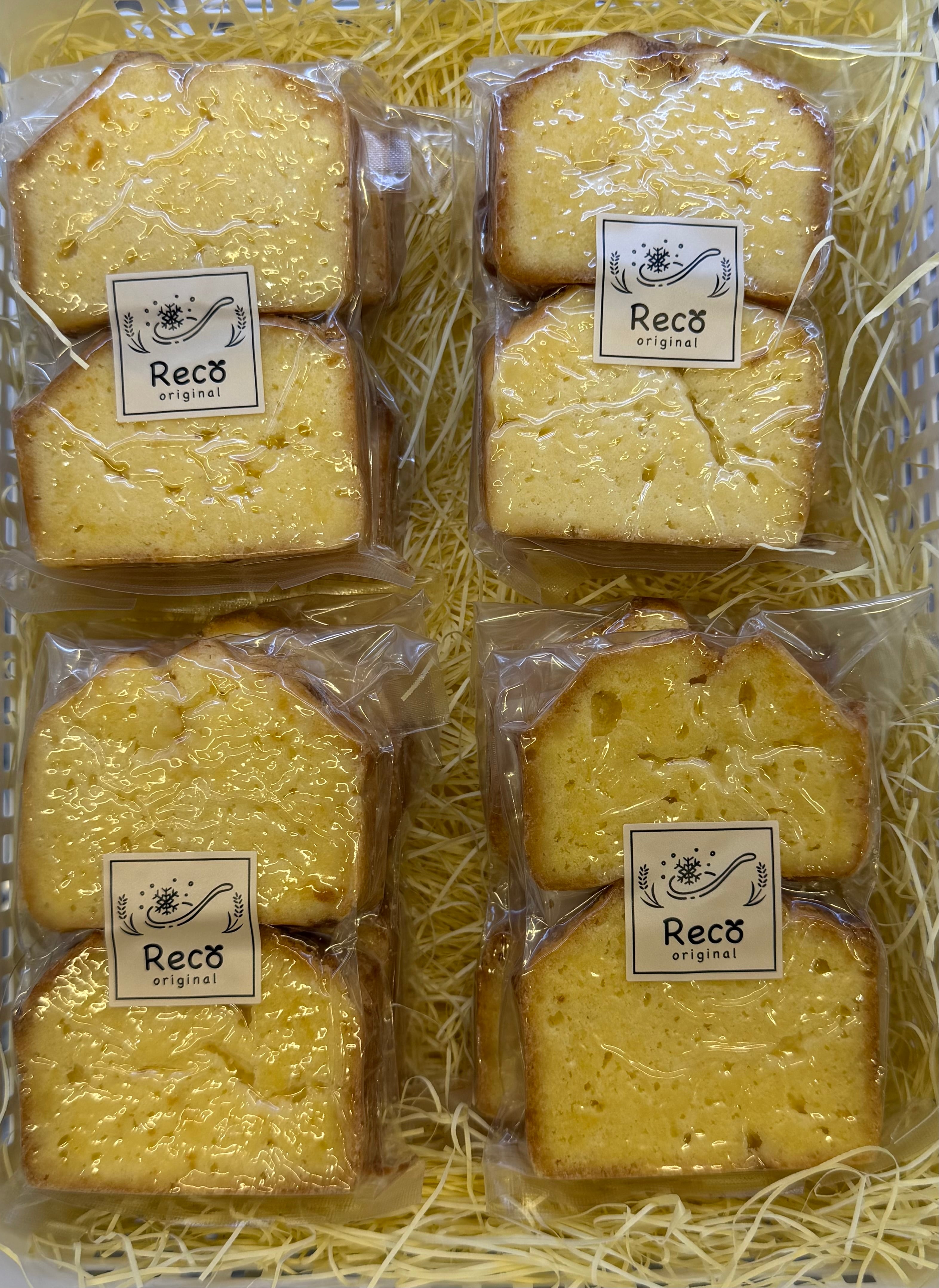 自然解凍して一番美味しい状態になるように材料の配分や焼き時間などを調整しようやく完成した原材料にも味にもこだわったRecoオリジナル商品