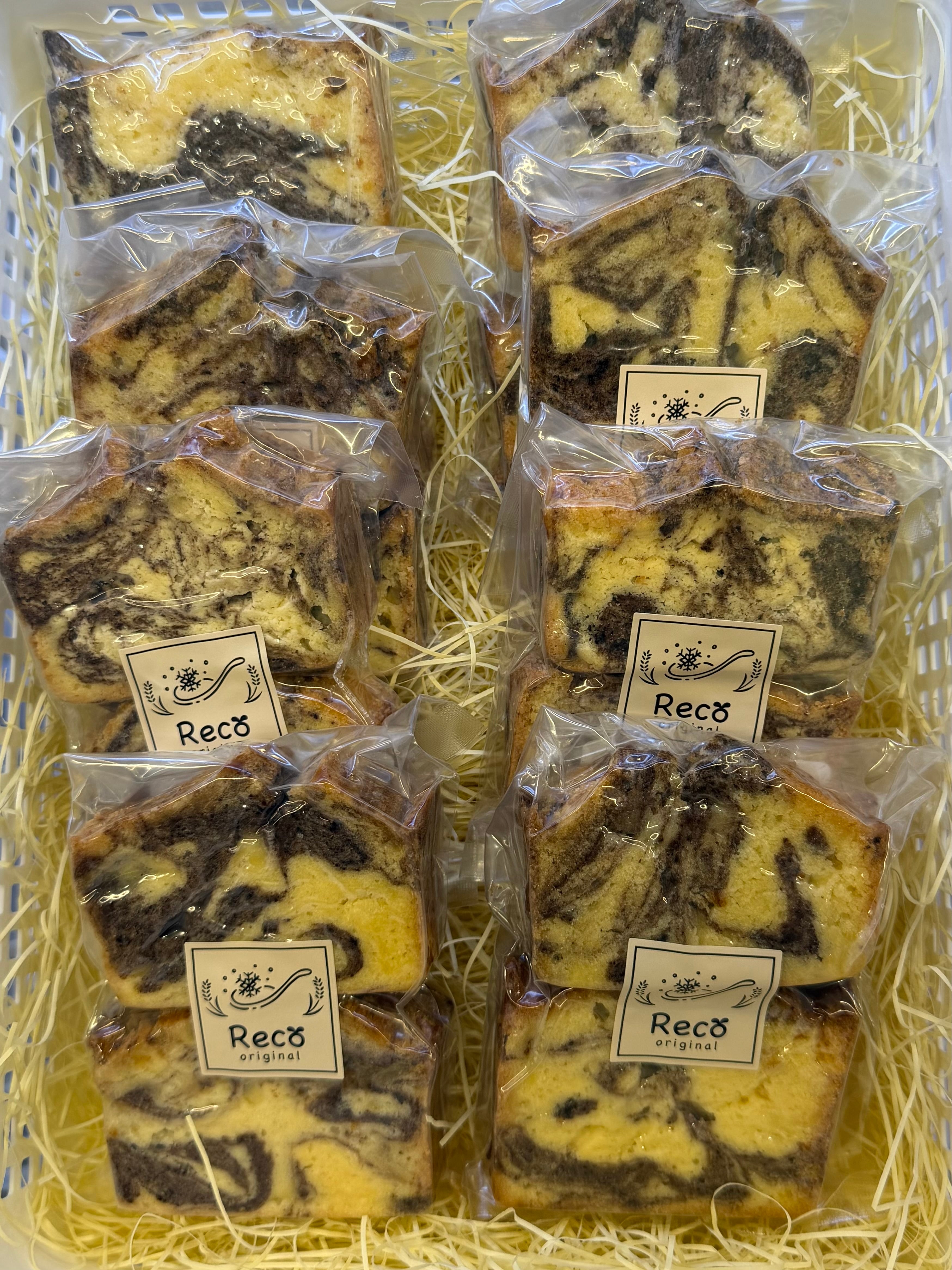 自然解凍して一番美味しい状態になるように材料の配分や焼き時間などを調整しようやく完成した原材料にも味にもこだわったRecoオリジナル商品